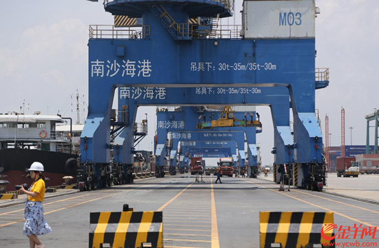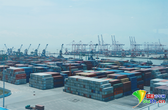 中國青年網廣州7月16日電 (記者 方瑞) 夏日的廣州港碧波蕩漾,在蔚藍的天空下,各色集裝箱與吊臂交相輝映,往來的船舶呼嘯而過……這是廣州港南沙港區最常見的景象。