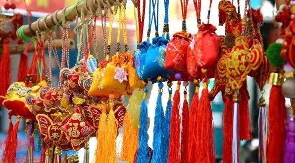中國古代崇拜五色,以五色為吉祥色。因而,端午節清晨,各家大人起床后第一件大事便是在孩子手腕上系五色線,佩戴香包。
