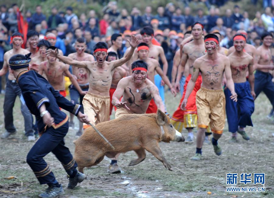 11月18日,在廣西恭城瑤族自治縣觀音鄉水濱村,村民參與野性搶野豬活動。當日,廣西恭城瑤族自治縣觀音鄉水濱村舉行野性搶野豬活動。瑤族多住崇山峻嶺,狩獵文化歷史悠久,隨著生產生活方式的不斷改變,傳統的狩獵活動日益減少。為了讓瑤族同胞不忘狩獵傳統,廣西恭城瑤族自治縣觀音鄉水濱村今年首次舉行野性搶野豬活動。新華社記者周華攝