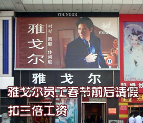 雅戈?duì)枂T工春節(jié)前后請(qǐng)假扣三倍工資引發(fā)爭(zhēng)議