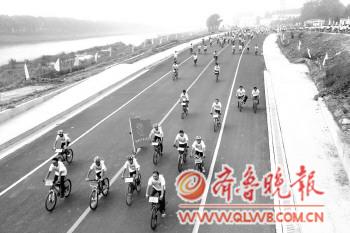 今年8月8日在新建成的徒駭河濱河大道上舉行環城騎行活動。(資料片) 本報記者 鄒俊美 攝
