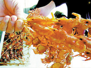 來自安徽的無證攤販陳某承認,他把不新鮮的小蝦,用從飯店下水道掏出的地溝油,炸成亮晶晶的“鮮蝦串”,賣2元一串。據商販自曝內幕,用好油炸,根本不掙錢。