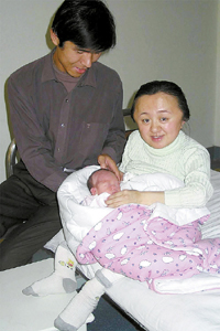 3月16日,在山東省立醫院婦產科病房里,劉愛萍與丈夫、女兒“諾諾”在一起。