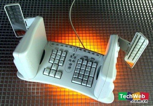 SafeType鍵盤一共有三塊鍵區組成,其中兩塊可豎立,同樣對于初次使用者來說,這款鍵盤可能并不怎么好用,但在練習之后,你會發現手指部和肘部乃至整個肩部都會感到十分輕松,開發者稱雙手這樣擺放能夠減少對手腕的傷害。SafeType鍵盤上還設置了一些多媒體鍵,使用者可直接進行CD光盤的播放、停止、下一首、音量等操作。它號稱世界上買的最好的垂直鍵盤,售價為$295。