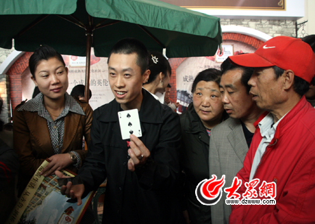 你有美女助陣,我有魔術師表演。隨著魔術類的節(jié)目在各大電視臺熱播,魔術表演也越來越受到市民的喜歡,這不,一個樓盤就請到了魔術師現(xiàn)場進行表演。魔術師嫻熟的撲克牌絕技,博得了在場市民的陣陣喝彩。