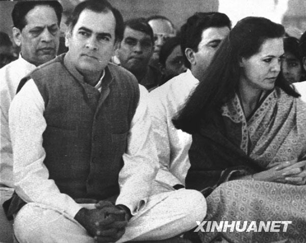 1991年5月21日,印度前總理拉吉夫·甘地在印度南部泰米爾納德邦的一次競選集會上遇刺身亡。這是尼赫魯家族史上第二位遇刺身亡的政治家。拉吉夫·甘地1984年10月31日在他母親英迪拉·甘地遇刺后就任總理,11月又當選為國大黨主席。同年12月大選,國大黨獲勝,拉吉夫·甘地再度就任總理。圖為1986年10月2日,印度總理拉吉夫·甘地和夫人在新德里參加圣雄甘地誕辰117周年的紀念活動。