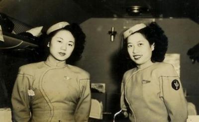 1929年,由美國寇蒂斯·賴特飛機公司與中國國民政府合作,成立了民國第一個家民航公司——中國航空公司(簡稱中航),但那時的飛機上還沒有空姐。(圖:1947年9月,中國航空公司第一空勤組的兩名空姐。)