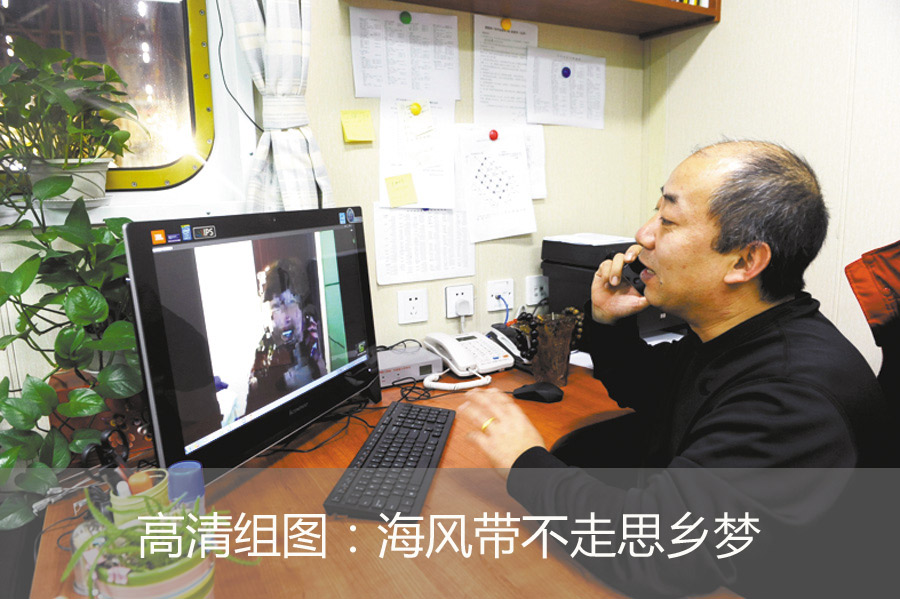 晚上8點,新勝利鉆井一號平臺的經理室里,趙忠生與妻子通過網絡視頻聊天,因為網絡、手機信號質量都不好,所以他同時撥通手機輔助交流。