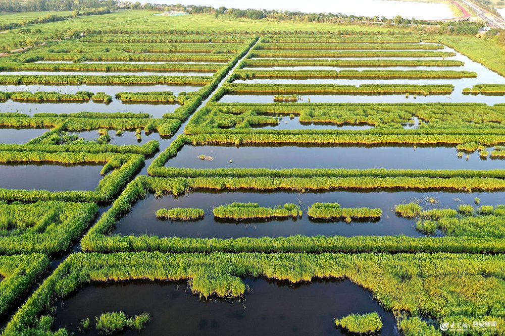 2019年6月21日,山東威海,無(wú)人機(jī)拍攝的榮成市濕地公園一角。