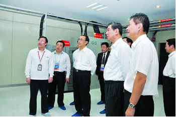 中國聯通常小兵董事長(左三)在山東聯通調研。