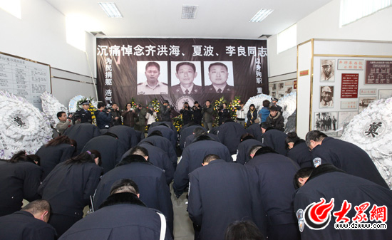 大眾網泰安1月7日快訊(記者 曹亮 盛堃 王磊 韋國騫)泰山南麓,哀樂聲鳴。從今天上午8:30起,泰安市全體公安民警在泰安市革命烈士陵園革命展覽館舉行悼念活動。泰安市市民及社會各界人士數千人手捧鮮花,也來到革命展覽館,深切緬懷在“1.04”襲警案件中殉職的兩名民警和一名協勤。稍后大眾網將帶來詳細報道。