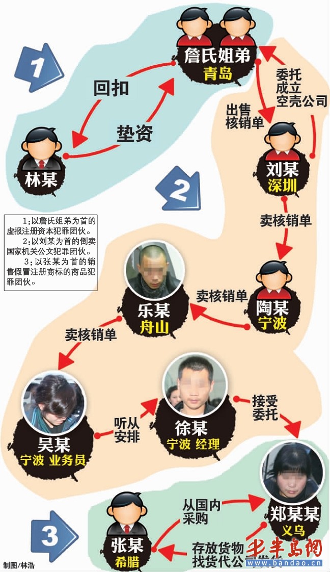 但是詹某卻并不知道這一批假LV包。詹某供述,她在這家公司當(dāng)業(yè)務(wù)員的同時(shí),和自己的弟弟還開(kāi)了一家公司,也是從事與公司相關(guān)的代理業(yè)務(wù),2010年3月,她在網(wǎng)上受一名叫“吳生”的人委托 ,以找林某墊資的方式,成立了8家空殼公司,騙領(lǐng)出口核銷(xiāo)單后通過(guò)快遞寄給“吳生”,“吳生”每月付給她相應(yīng)的領(lǐng)單費(fèi)用。而這批假貨所用的核銷(xiāo)單,正是出自這8家公司騙領(lǐng)的核銷(xiāo)單中的一張。很快,這個(gè)以詹氏姐弟為首的虛報(bào)注冊(cè)資本犯罪團(tuán)伙被一網(wǎng)打盡。