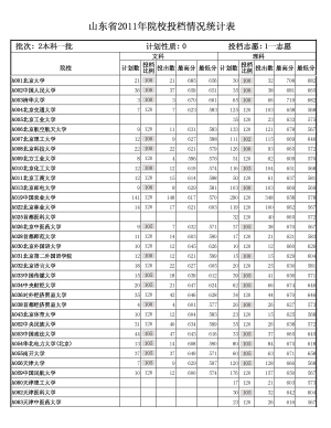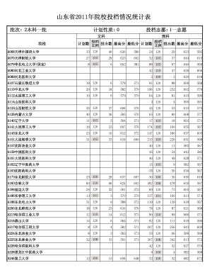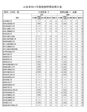 2011年我省文理科一批招生計(jì)劃總計(jì)50620人,投出考生49692人。其中文科招生計(jì)劃8853人,參與一志愿投檔院校172所,投出考生8679人;理科招生計(jì)劃41767人,參與一志愿投檔院校204所,投出考生41013人。本科一批藝術(shù)類一志愿投出32908人,其中藝術(shù)文27286人,參與院校478所;藝術(shù)理5622人,參與院校384所。本科一批體育一志愿招生計(jì)劃4537人,投出考生4769人,參與院校171所。