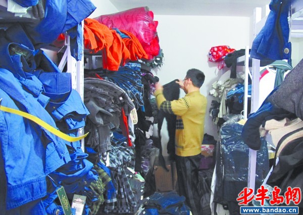 盡管是周日,劉君和妻子小郭一如即往地在早上7時30分許起床,并在8時準時打開電腦、登錄淘寶網開始上班。隨著接連不斷“叮咚”響的提示音,網店正式“開門”營業。這處位于勁松三路的家是劉君在半年前租來的,三室一廳一廚兩衛的房子大約150平方米,聽上去面積不小,但除了廚房一處衛生間,真正供夫妻倆生活用的只有一間小臥室。在非常寬敞的客廳里,地上整齊擺滿了一個個大紙箱,紙箱里是疊放整齊的羽絨服等大衣和外套。在主臥室和一處未使用的衛生間里,貨架和地上也是存放著滿滿當當的服裝。