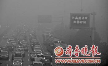6日,濟南的大霧仍未散去,部分區域能見度不到百米。早晨,經十路再現大堵車,高速公路全部封閉。 本報記者 周青先 攝