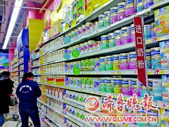 7日,在濟南一家大型超市的進口奶粉區,無明治奶粉在售。馬云云攝