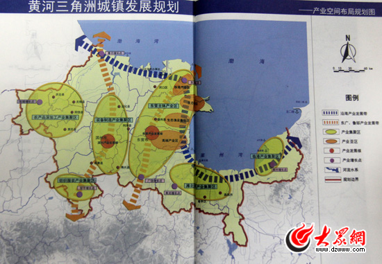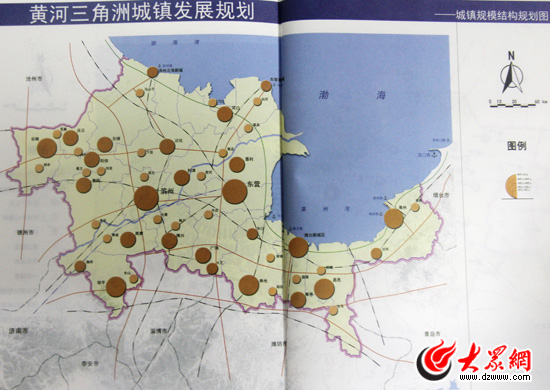《黃河三角洲城鎮發展規劃》概括為“三大戰略構思、一個城市區、兩條城鎮帶、四港四區四節點、五大功能定位、六級規模結構”。