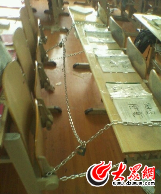 輔導員告訴記者,以前有的學生為了占座想出各種招式。有人買了很粗的鐵鏈,把椅子和桌子鎖在一起,自己一占就占一排;還有同學甚至把自己的枕頭和咖啡機都帶到教室去,一個人占了很多個位置。“這種現象屢禁不止,清理自習室也是為了解決這個問題。”