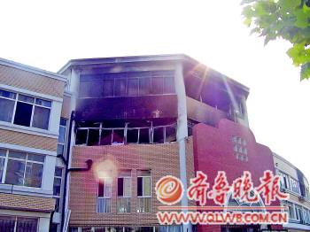 發(fā)生火災(zāi)的樓層很多窗戶燒成了“黑洞”。本報(bào)記者齊金釗攝