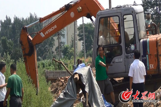 據民警介紹,8月9日上午7點左右,雇傭郭曉剛的青島大有同人公司(施工方)讓其到金溝子村舊址整理建筑垃圾,即將建筑垃圾向另一側移動,而非清除或搬離建筑垃圾,以消除后期施工時建設圍擋的障礙。“我們在現場只看到一輛挖掘機,并未看到垃圾裝運車之類的其他任何車輛。”城關派出所110民警陳錫軍說。