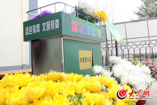 濟南市殯儀館內的火紙換鮮花服務點。記者 馬俊驥 攝