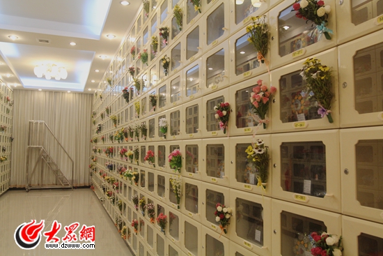 濟南市殯儀館的骨灰紀念堂內,一束束鮮花顯得莊嚴而充滿溫情。記者 馬俊驥 攝