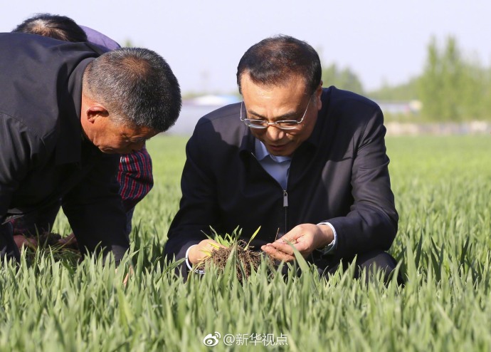 20日是二十四節氣中的谷雨。李克強當天下午來到濟南曲家村一處麥田。谷得雨而生,谷雨前后利于春作物播種生長。總理蹲在田間,翻開泥土察看墑情,還拔起一株麥苗觀察根系。在向糧農細問農資和賣糧價格之后,他說,你們放心,國家對小麥和水稻有托市收購價,嚴防谷賤傷農。