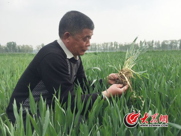 孫玉河向大眾網記者講述李克強總理拔起麥苗觀察根系的情形。
