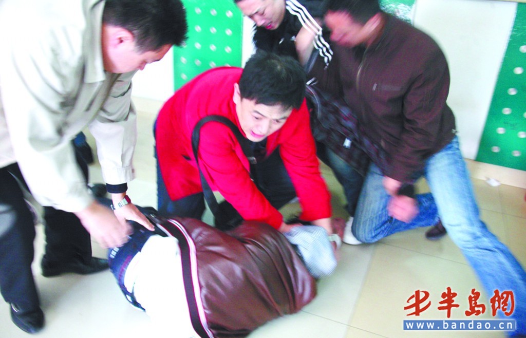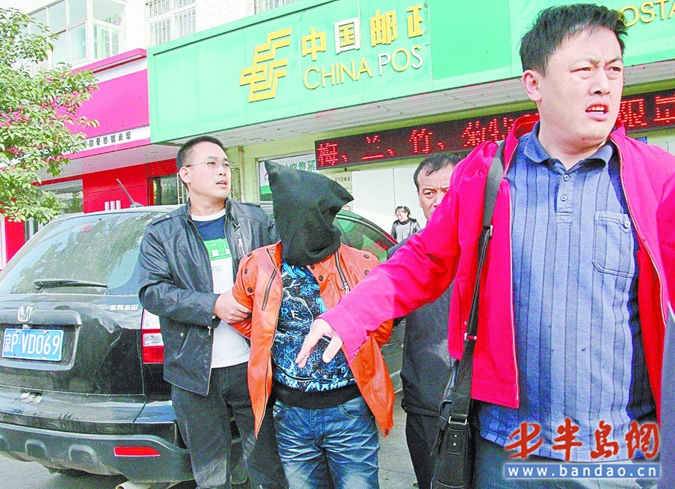 10月26日上午,辦案民警在即墨市新興路一儲蓄所抓捕犯罪嫌疑人。