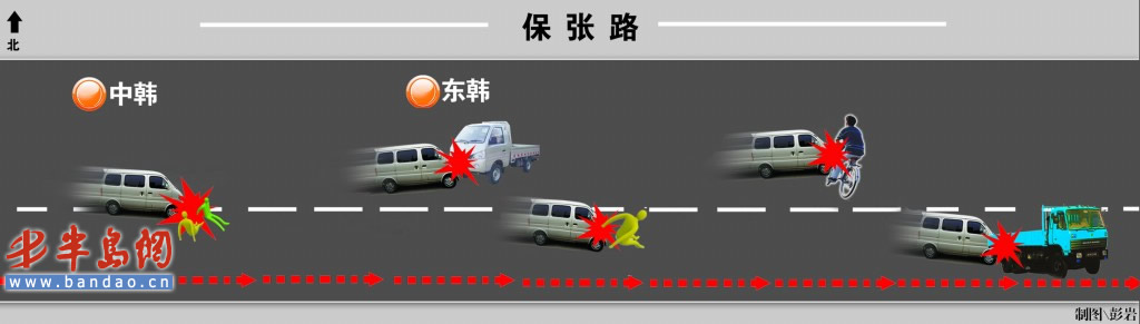 據悉,2010年6月29日晚,程某在單位吃飯時喝了些酒,酒后他開著一輛小型面包車沿嶗山區保張路由西向東行駛。當晚9時,面包車行至中韓街道某居民樓前時,程某“一走神”把兩名女行人撞傷,“我當時嚇壞了,本能的就想逃跑”,撞人后的程某并沒有停車,繼續駕車行駛。據他事后回憶,自己的腦子里已經是一片空白。當他駕車走到東韓社區居委會前時與一輛正常行駛的小貨車相撞,隨后他繼續駕車狂奔。晚9時15分,程某在某網吧前又將一男行人撞傷,隨后他又在青銀高速公路橋將一名騎自行車的男子撞倒,該男子被送到醫院經搶救無效不幸身亡。面對這樣的慘劇,這輛“瘋狂”的面包車竟然還沒有停下來的意思,直到撞上了一輛大貨才停下,而驚魂未定的程某則棄車逃逸。