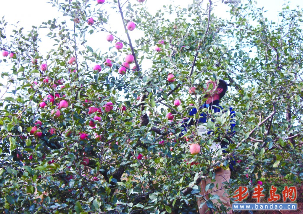 如今,蘋(píng)果采摘已經(jīng)進(jìn)入尾聲,果農(nóng)正在采摘樹(shù)上所剩不多的蘋(píng)果。