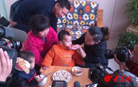 當車到了城陽站,果然記者看到眾多的旅客如潮水一般從站臺上涌向了火車。這時列車上的乘客,甚至都不敢輕易地挪腳,生怕一抬腳就沒有再下腳的地方。沒有買到坐票的一些乘客居然能7個人擠在洗漱間狹小的空間里。