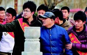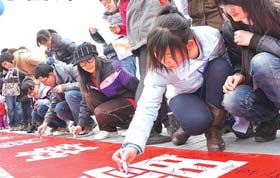 3月6日,濟南天橋交警大隊的民警來到天橋晚晴老年公寓,為百歲老人王朝英過生日,從1992年起,天橋交警大隊民警開始義務照顧老人,至今已20年了,民警們經常幫助老人洗衣、看病,前幾天還帶老人游覽了大明湖。這些年來,交警大隊民警換了一茬又一茬,而照料老人的“愛心接力棒”卻一直延續著。 圖為6日,王朝英老人在她的交警“兒女”的陪伴下喜過百歲壽辰。 本報記者 陳文進 本報通訊員 黃翌 攝影報道