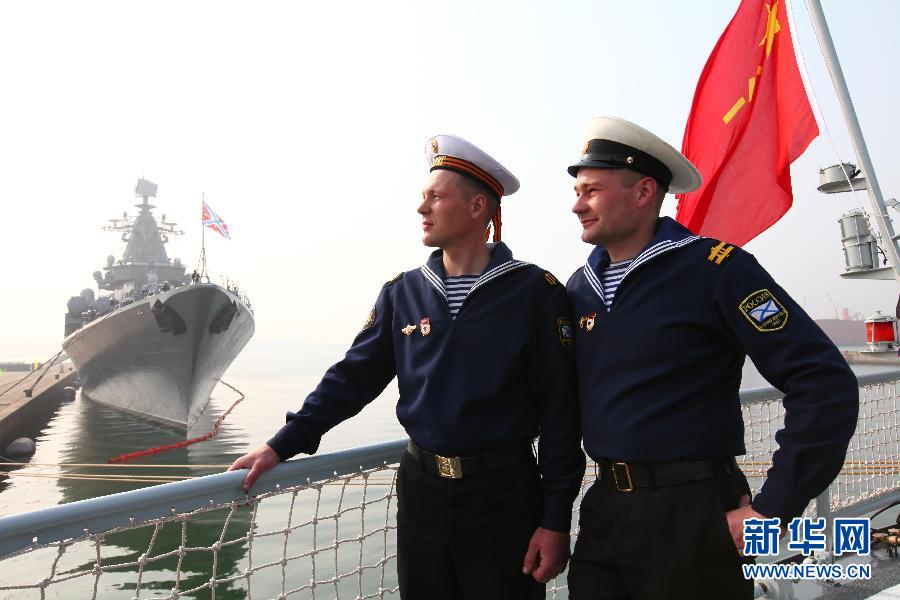 4月22日,俄羅斯海軍水兵參觀中國軍艦。當日,“海上聯合—2012”中俄海上聯合軍事演習在青島正式展開,參加聯合軍演的中俄兩國海軍官兵進行軍事友好交流,相互參觀軍艦,增進彼此的了解和友誼。新華社記者 查春明 攝