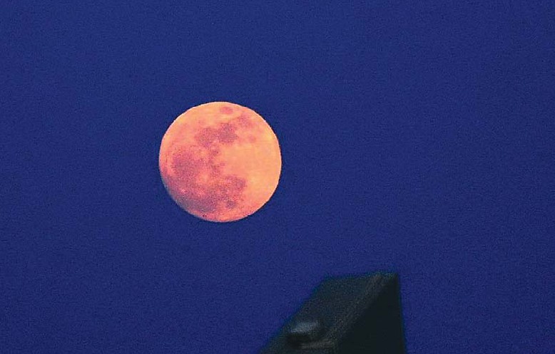 6日夜,濟南,“超級月亮”如約現身。每經歷14次圓缺,即天文學中的14個“朔望月”(合413.4天),月亮就會達到一次最大最圓的“圓滿”狀態,即所謂的“超級月亮”。 6日11時35分為“望”,此時地球運行到月亮和太陽之間,月亮恰好“直面”太陽,將太陽光全部反射給地球,故呈現“最圓”;而同日12時,月球又過近地點,因而從地球上看去,月亮比平時要大一些。 下一次最大最圓月要等到2013年6月23日。 本報記者 周青先 攝