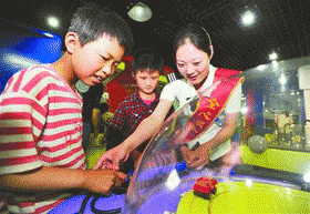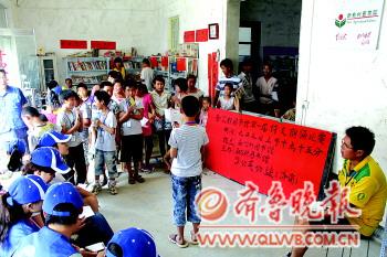 6月3日,在巨野龍堌鎮鹿樓村的“新農村圖書館”里,孩子們正在準備朗誦比賽(左圖)。這家圖書館是該村的“80后”大學生鹿海斌自費創辦的,圖書館每天能吸引七八十個十里八鄉的兒童和十幾名老人,有200多名孩子在這里辦了借書證。上圖為鹿海斌和孩子們在一起。 本報記者 梁斌 攝