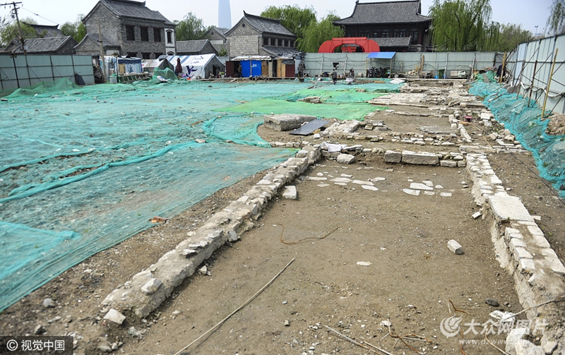 2017年4月11日,在山東濟南明府城百花洲整治工程施工中,發(fā)現(xiàn)一處明代“泰山行宮”遺址(又稱碧霞宮)。考古人員發(fā)掘清理出房址5座、碑額2通、石雕赑屃2只及少量瓷片、建筑構(gòu)件。