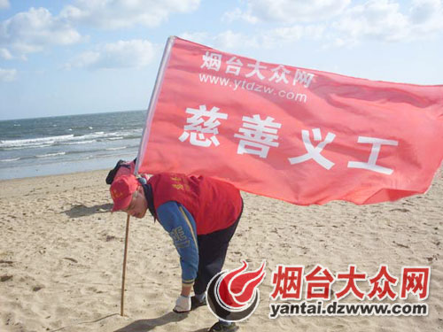 組織煙臺大眾網義工海邊環保