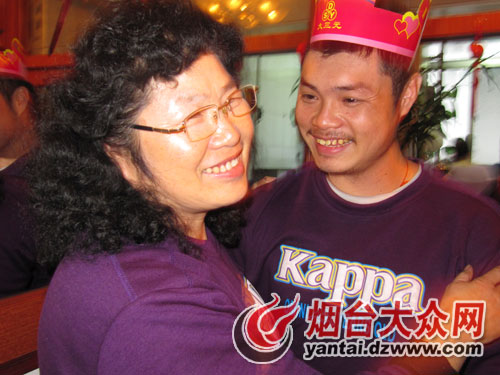 生日當天高興地與母親擁抱