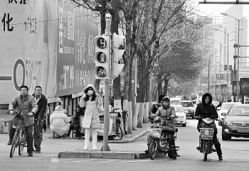 倒計(jì)時(shí)信號(hào)燈全部增設(shè)完畢,人行道也是“倒計(jì)時(shí)”。 記者 殷寶龍 攝