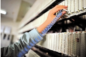 圖1:通信總站的配線機房,工作人員在檢測線路。
