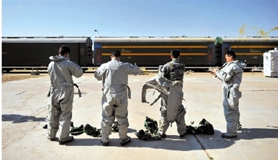 圖2:特種燃料供應站的工作人員穿好防護服,準備轉運火車送來的燃料。