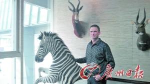美國(guó)人盧彬的辦公室里,兩邊的墻上都掛著各種動(dòng)物標(biāo)本。其中有盧彬親自獵到的羚羊頭和斑馬皮。
