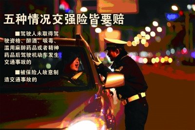 陳先生介紹說,首先,無證駕駛、醉駕、吸毒、濫用麻醉藥品或精神藥品后駕車出險,故意制造交通事故等五種情況,在商業車險都屬于免責范圍(迄今依然不賠)。這就導致了保險公司人士在交強險實施最初形成固有印象:交強險也不賠。
