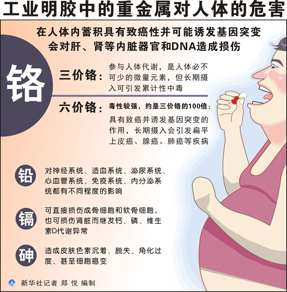 新華網(wǎng)北京4月21日電(記者呂諾)“鉻超標膠囊”對健康影響究竟有多大?中國毒理學(xué)會副理事長、軍事醫(yī)學(xué)科學(xué)院毒物藥物研究所研究員廖明陽表示,鉻有毒性,但從現(xiàn)有資料和報道來看,“鉻超標膠囊”一般不會引起人體鉻急性中毒和慢性鉻蓄積。