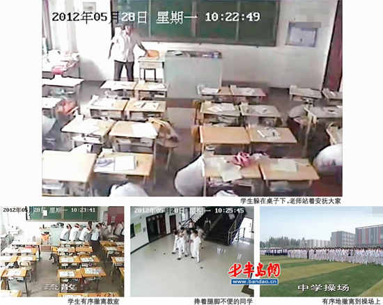 “這可不是平時演練啊,是真的地震!誰也不知道后果會怎樣!”校長劉中山表示,師生間的情誼同樣經受得住地震的考驗。