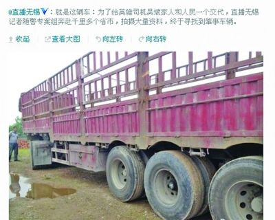 昨日,記者在采訪中得知,6月6日凌晨3時許,無錫警方赴江西宜春,找到的其中一輛大貨車有重大嫌疑,并找到了司機。獲知消息后,省公安廳交巡警總隊有關負責人也趕赴宜春,指導調查。