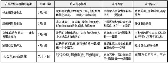 為了反商業欺詐、打擊虛假廣告、保護消費者的合法權益,市消費者協會前不久公開向社會征集與消費者生活相對密切的“減肥、美容、保健品”類的虛假廣告線索,并邀請藥品、食品、廣告、醫療、美容、營養、運動等有關行政管理部門及專業人士,對征集到的廣告進行了評議。