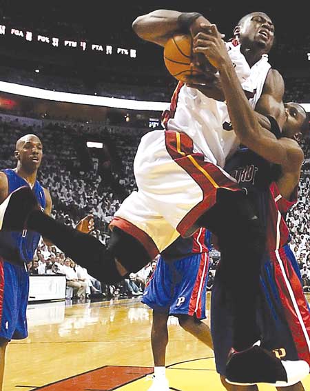 但關鍵的第四節韋德猛醒,他連投帶扣加罰球,一氣又添12分,最后以31分的全場之最,率領熱火隊以89∶78擊敗活塞隊,現以3∶1的總比分在東部決賽中占優,再贏一場即可淘汰對手,挺進總決賽。
