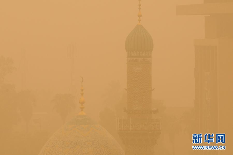 8月18日,伊拉克首都巴格達(dá)的一座清真寺矗立在沙塵中。伊拉克首都巴格達(dá)18日再度遭遇嚴(yán)重沙塵天氣,能見(jiàn)度極低。夏季的巴格達(dá)氣候炎熱干燥,較易出現(xiàn)沙塵天氣。新華社記者張寧攝